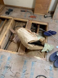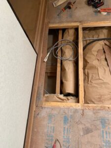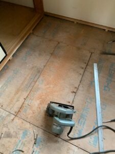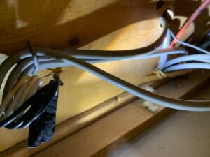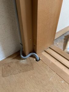 今回のお部屋のパターンですと畳のお部屋の下に分電盤があったので畳を上げて板を開口して線を隠蔽し、ジョイントしました。